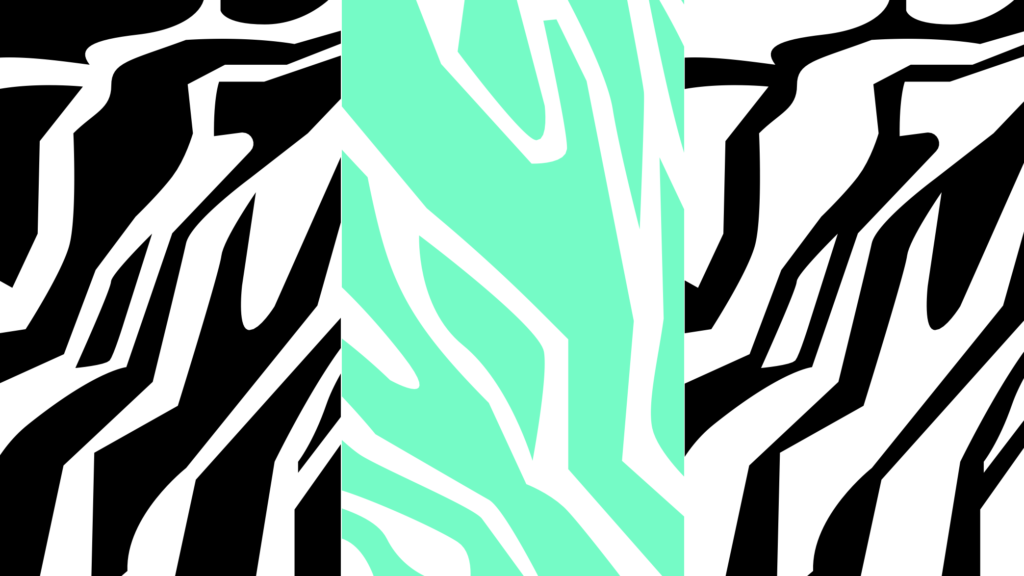 Criamos padronagens de zebra que combinam com nossa marca. Com formas mais geométricas, nossas padronagens trazem a imagem da zebra de uma forma mais proprietária e única. As padronagens são uma alternativa a imagens literais de zebras e funcionam tanto para dar mais personalidade à comunicação quanto como janelas para fotos ou grafismos isolados, quando separadas as suas listas.