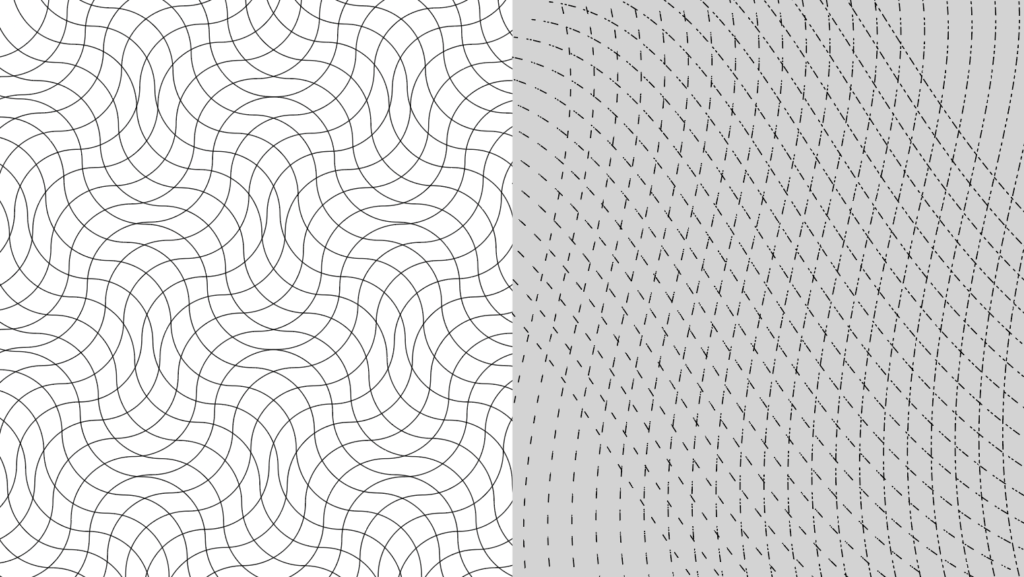 Com inspiração nos elementos de segurança das cédulas de dinheiro, criamos grafismos que se transformam em padronagens. Essas filigranas dão dinamismo e personalidade para as peças de comunicação, aproximando nossa identidade visual do universo financeiro de uma forma conceitual.
